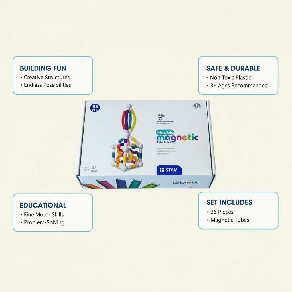 • Item Name: 36-Piece Flexible Magnetic Tube Block